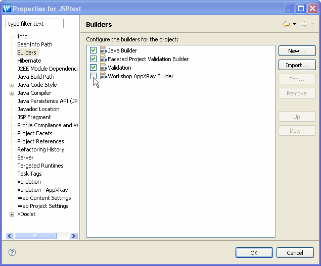 AppXRay builder is also disabled if you use the Project > Build Automatically command to disable automatic builds. Within the Workshop products, automatic builds are done not only for Java classes but for the AppXRay application database.