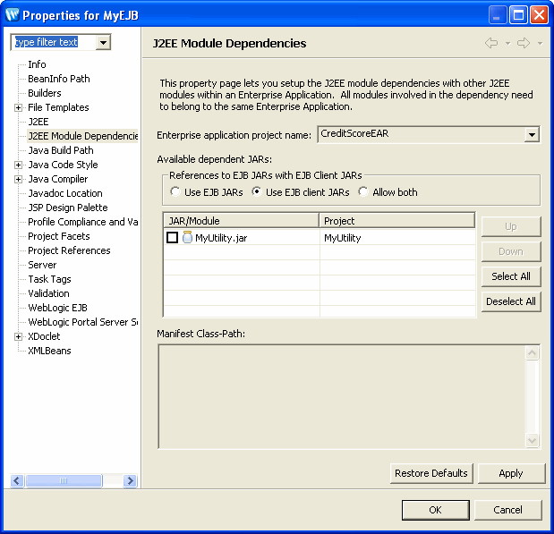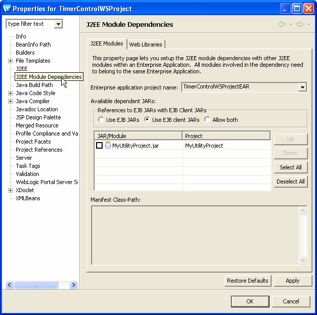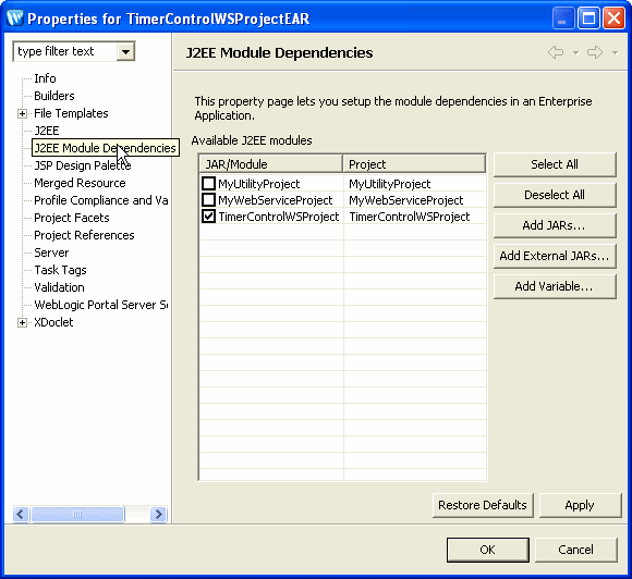 > J2EE Module Dependencies). See below for detailed