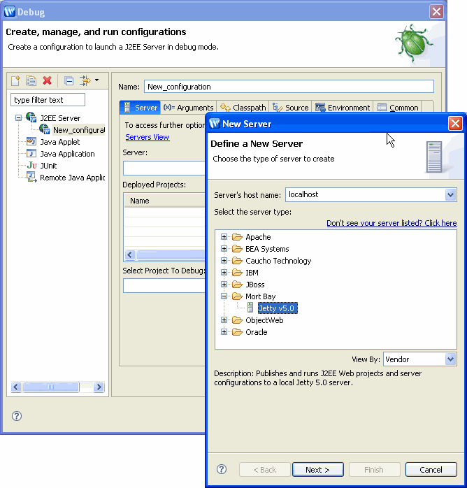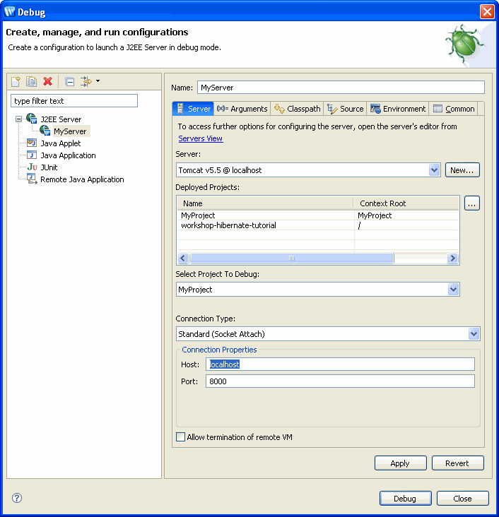 Configuring the server for remote debugging is a feature of the server. This information is provided for your convenience. For definitive documentation, consult your server documentation.