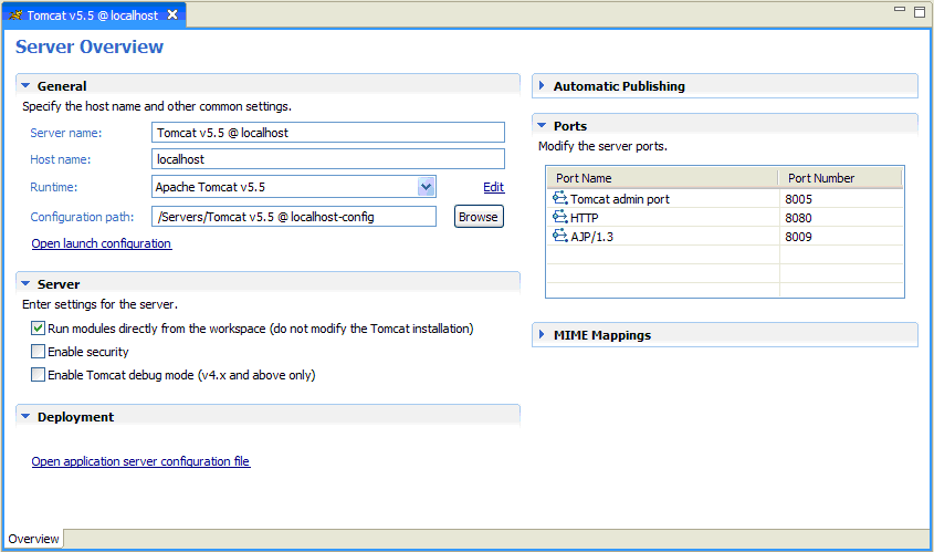 From Server Overview you can view and set deployment and runtime properties.