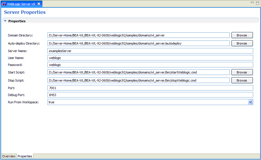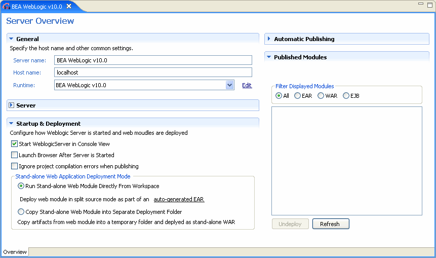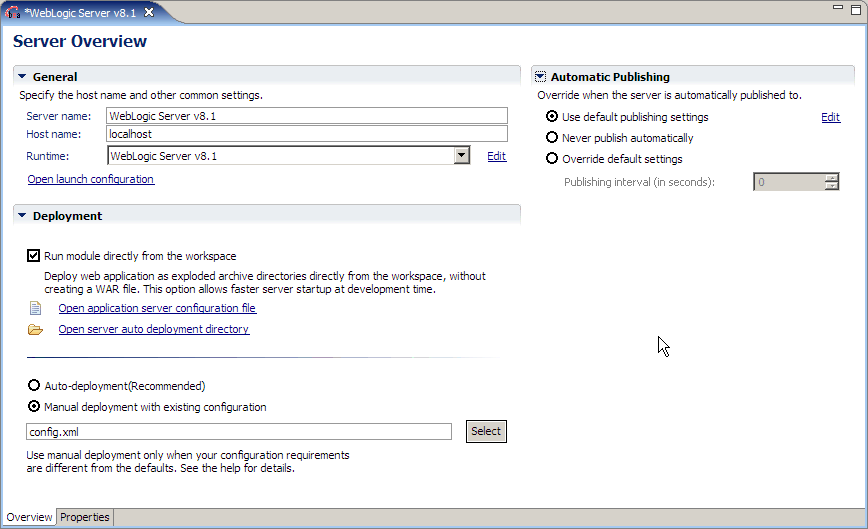 From Server Overview you can view and set deployment and runtime properties.