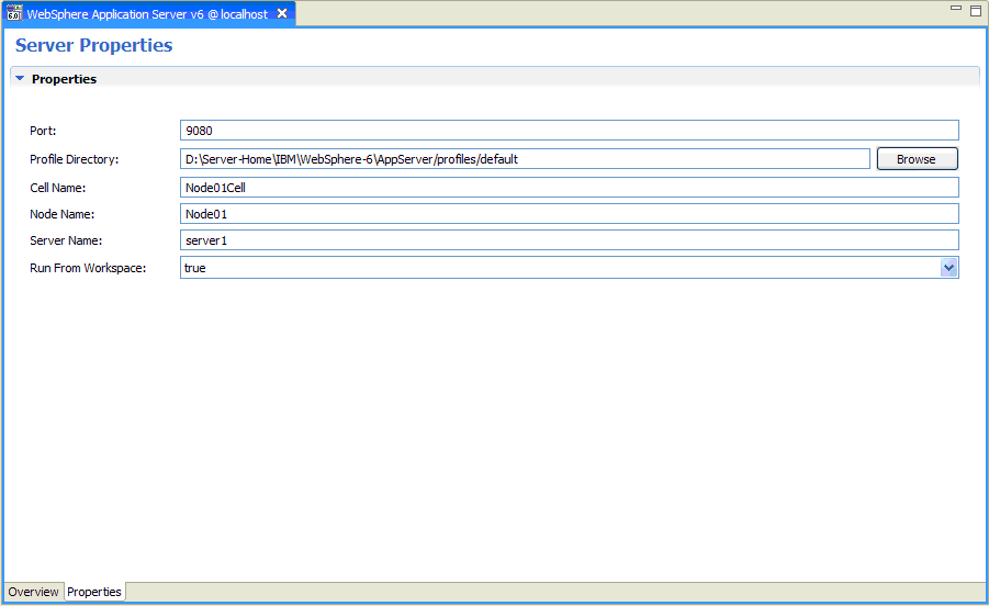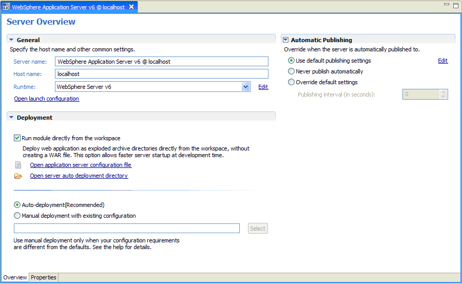1. Double click the server name in the Servers view. The Server Overview will be displayed.