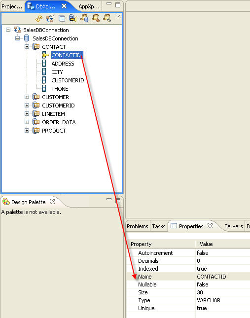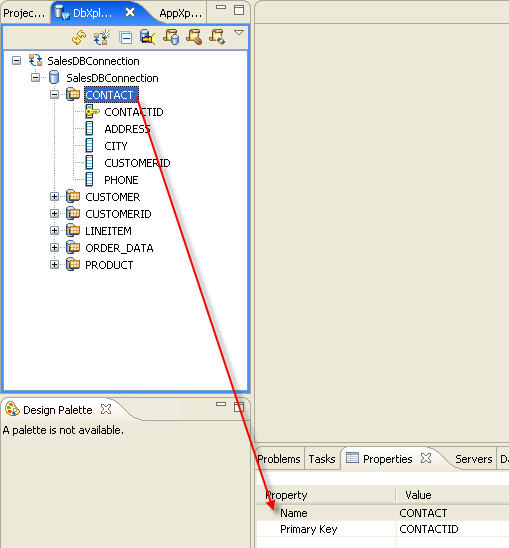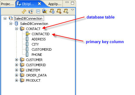 node. You can view the individual tables and columns. Observe that the DbXplorer