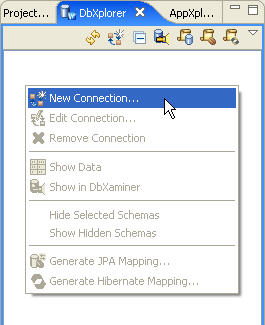 In this step, you will use the DbXplorer view to browse database artifacts.