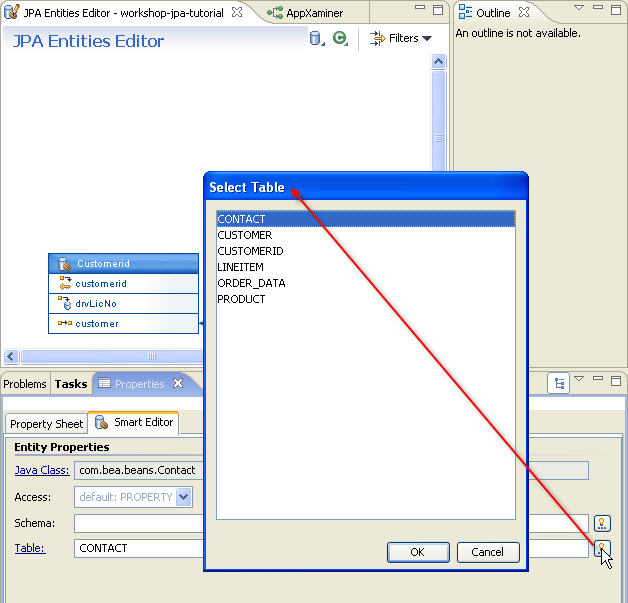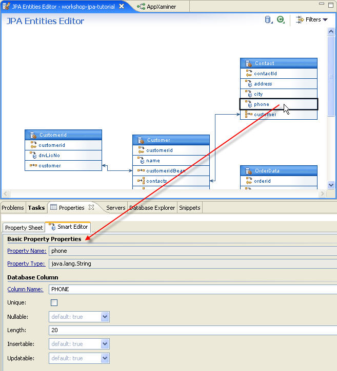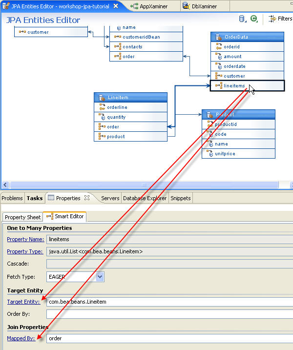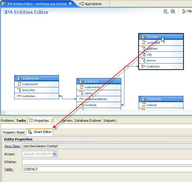 - Return to the JPA Entities Editor view from the DbXaminer view.