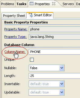 - With the Smart Editor, you can edit the associated Java Bean class,