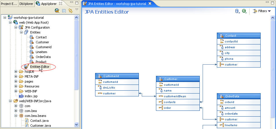 - In the AppXplorer view, expand workshop-jpa-tutorial