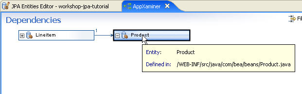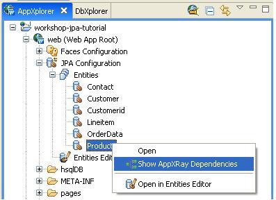 the Product entity and select Show AppXRay Dependencies to view the AppXaminer.