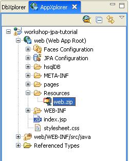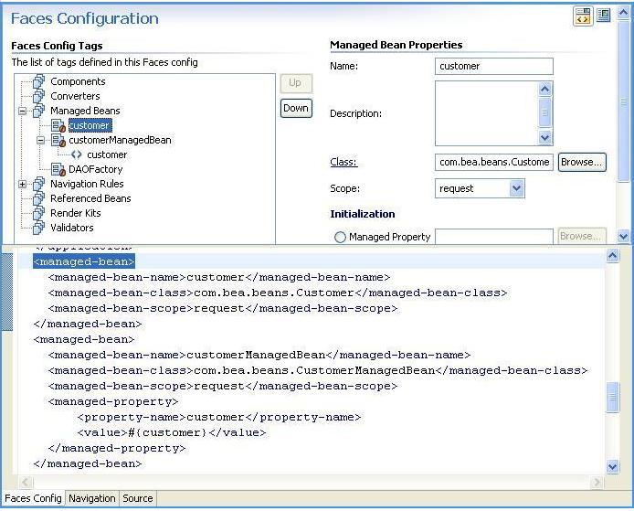 The imported application includes data access objects and a managed bean. The project is also completed by the importing of a faces-config.xml file which manages the navigation of the application and the JSPs that comprise the user interface.