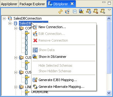 - In DbXplorer, right-click the schema SalesDBConnection and select Show in DbXaminer