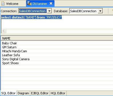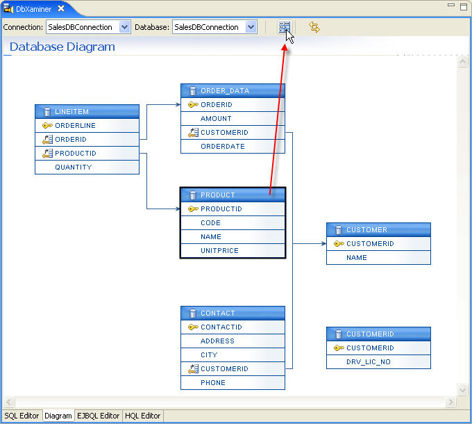 Workshop's DbXaminer renders database diagrams for a specific schema, table, or column and maps out the relationships between the tables, the primary keys, and foreign keys. The DBXaminer also provides an SQL editor that allows you to author queries and update data.