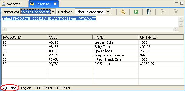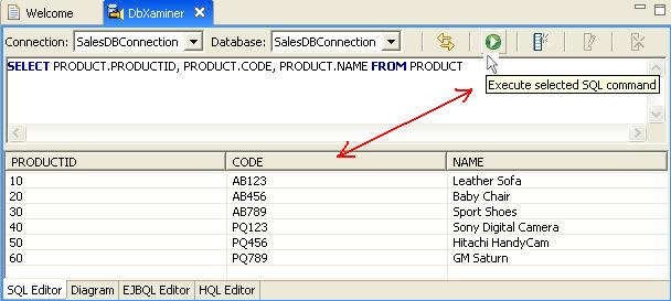 and click the Show Data button in the toolbar of the DbXaminer view.