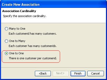 To Create a new One-to-One Association between CUSTOMER and CUSTOMERID