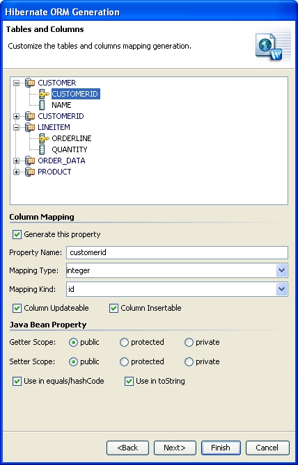 Workshop remembers all the settings specified in Hibernate ORM Generation wizard to assist the next time you use it for the same database connection.
