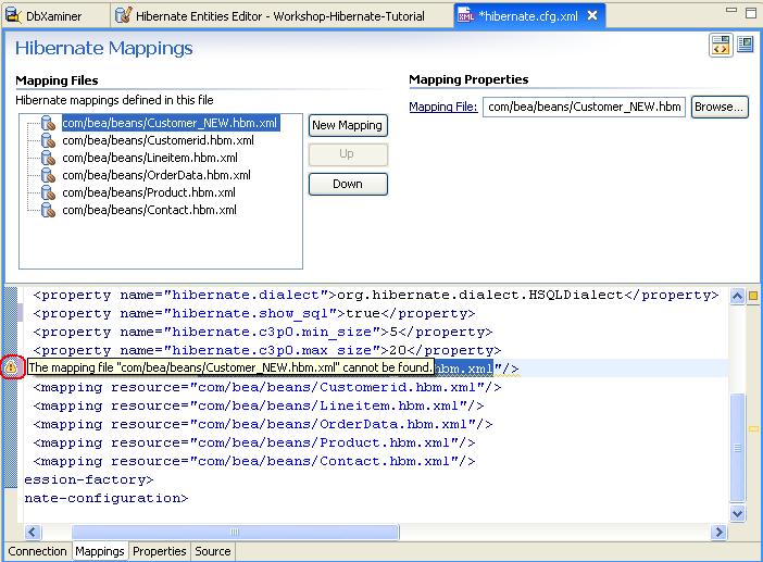 in the source editor to com/bea/beans/Customer_NEW.hbm.xml.