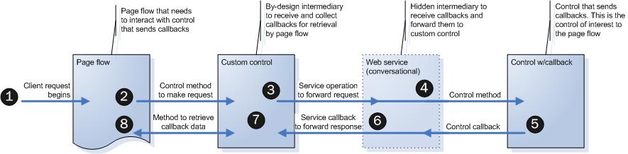 This version 8.1 feature was provided as a way to bridge the gap between the polling model supported by page flows and the event-based model supported by controls and web services. On their own, neither the page flow nor the custom control wrapping a callback-enabled control could create and manage a conversation. A page flow can only be accessed when handling a browser request — not afterward, say, to wait for a callback. A custom control requires a conversational container to participate in a conversation, and the page flow is not such a container. Prior to version 8.1 SP2, these design constraints made it impossible for callbacks to be correlated and delivered from a control to a client page flow.
