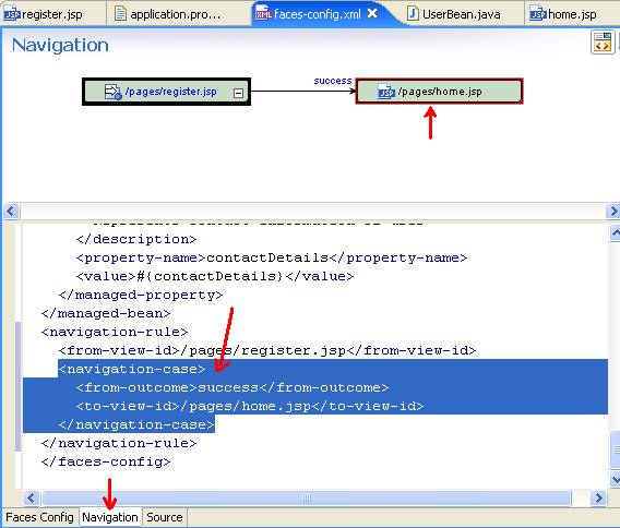 4.4. Visualize faces-config.xml using the Navigation view