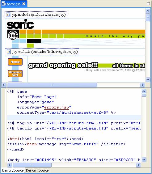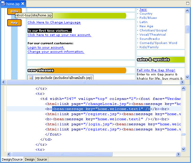 Double-click home.jsp in the AppXplorer to open this page.