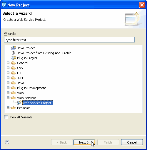 - In the New Project dialog, Expand Web Services and select Web Service Project.