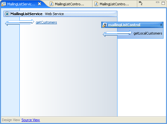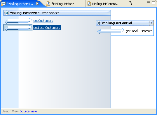 In Design View, the web service should look like this: