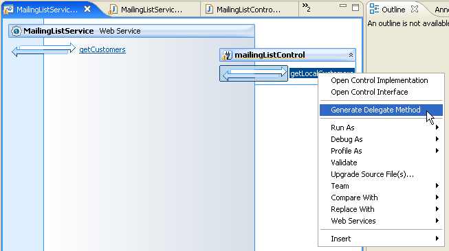 You will now add a method to the service that will call a method on mailingListControl, the instance of MailingListControl you just created.