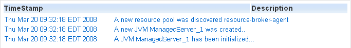 The Tasks and Events viewer, at the bottom of the WLOC Administration Console, displays the last 20 events that occurred. For more information about viewing events, see Monitor events and pending approvals.