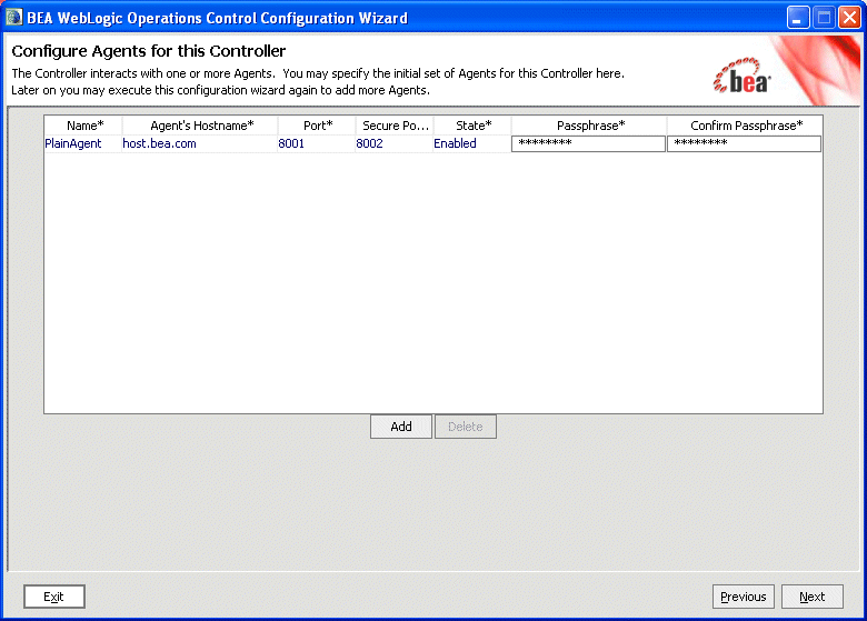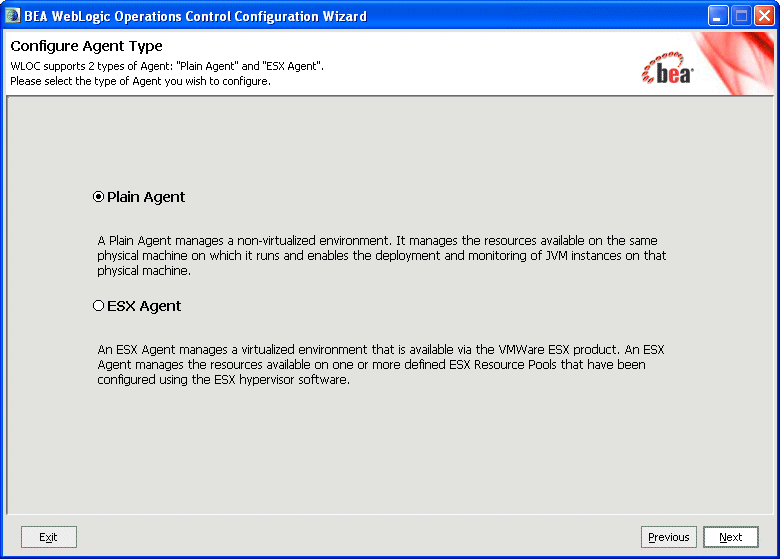 To create the Plain Agent, use the WLOC Configuration Wizard and complete the following steps: