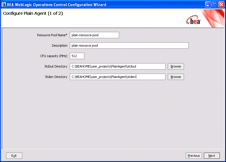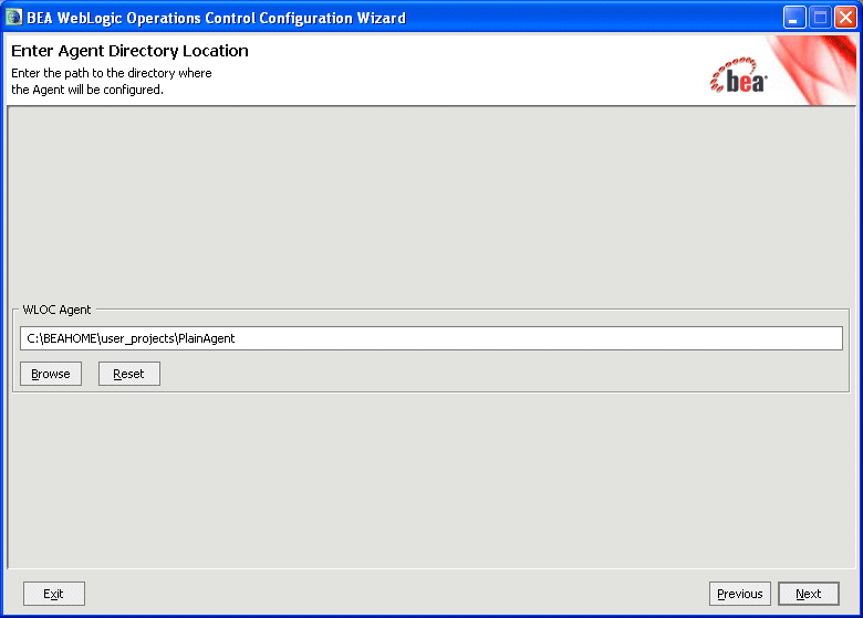 is the BEA Home directory containing the WLOC installation, and PlainAgent