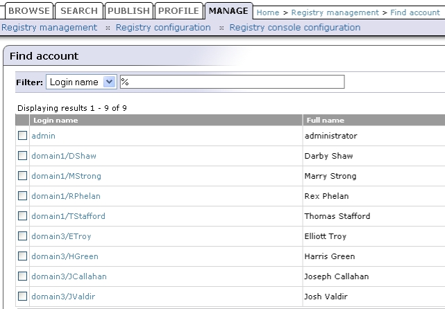 Note: | User account properties that you specify at the Figure 11-6 will be treated as read-only from Registry Console and registry APIs. |