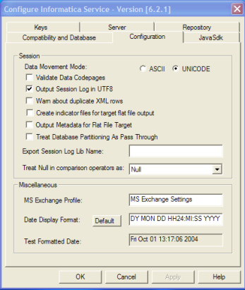 - If you select the UNICODE option, remove the check from the Validate Data Codepages check box, and check the Output Session Log in UTF8 check box.