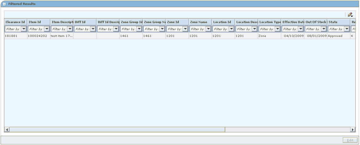 Clearance resets can be searched upon using the item or location criteria. The lowest definable level by which you can search for a clearance reset is a subclass/zone.