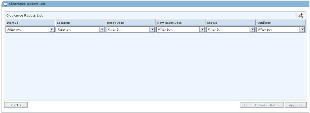Click Retrieve Clearance Resets. Your results appear in the Clearance Resets Results table.