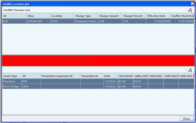Whenever the status of a price event changes, conflict checking is performed and the conflicts are displayed.