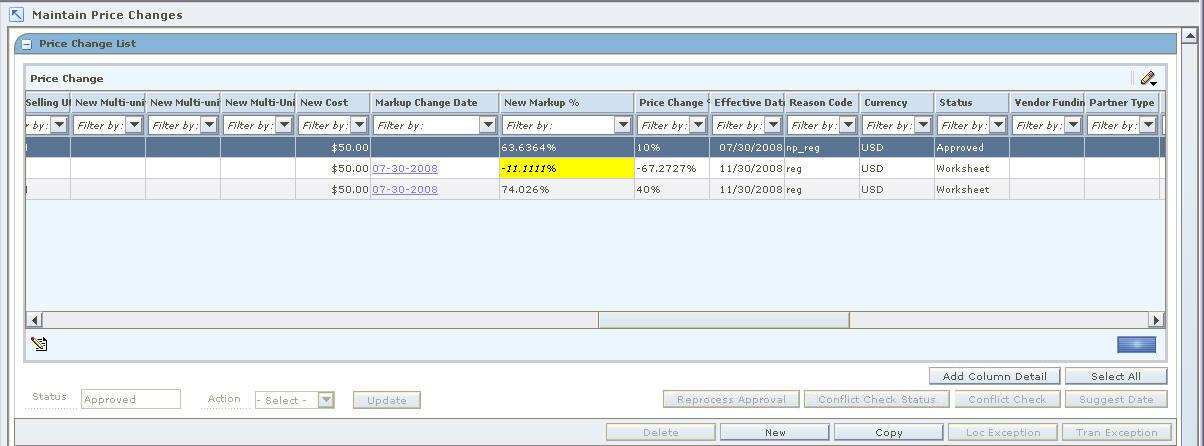 If conflicts exist, you must adjust the details of your price change before you can move the price change to the next status.