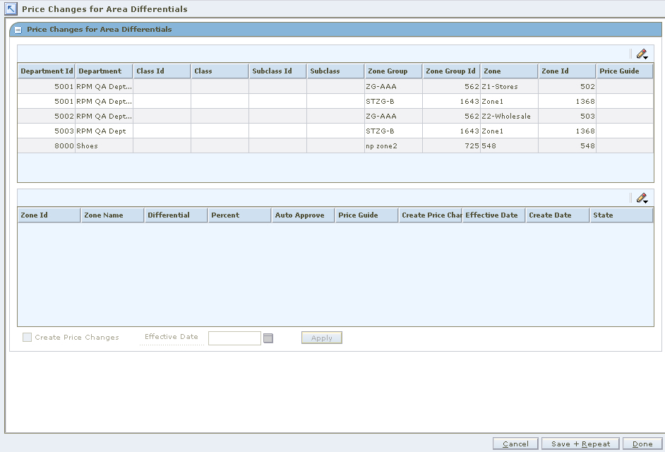 Note: You can create price changes at the zone level. Locations are not required. |