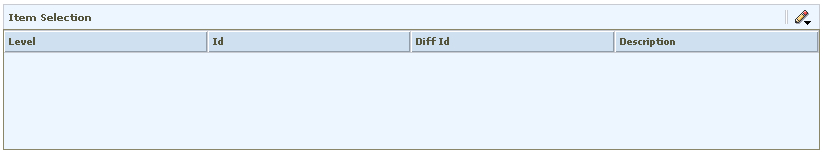 Click Select. Items that meet your criteria are added to the Item Selection table.