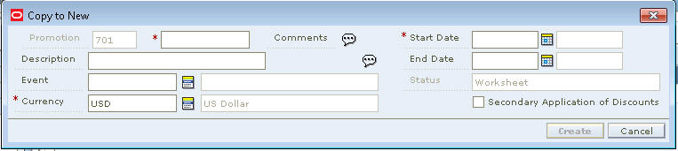 Click Copy to New. A dialog opens for you to enter details about the new promotion you want to create.