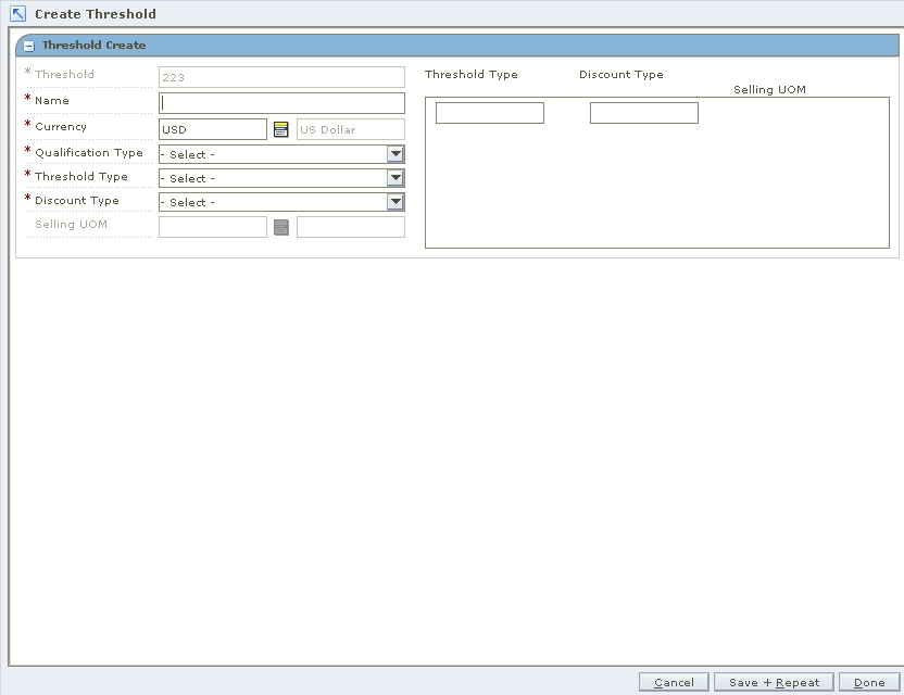 In the threshold area on the right, enter the amount or quantity that needs to be purchased in the Threshold Type field.