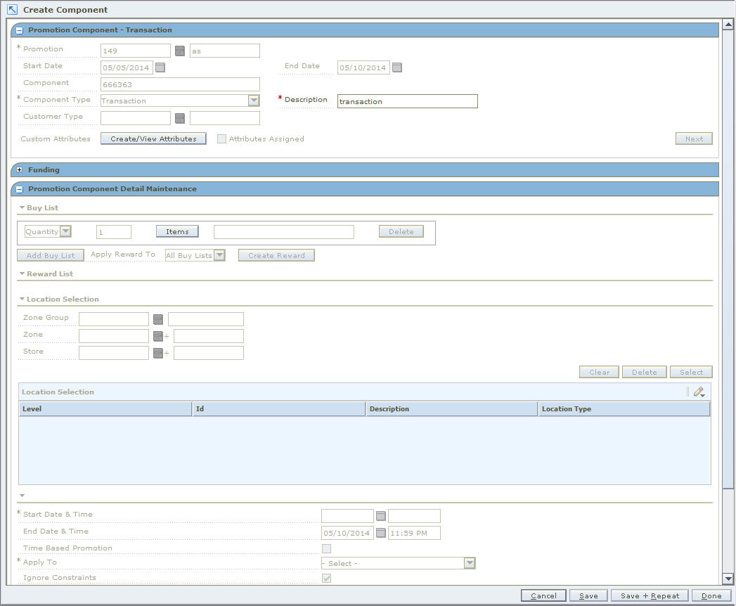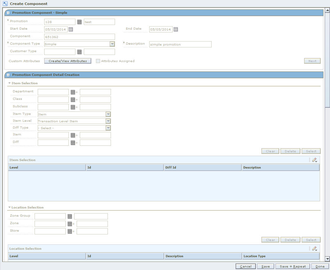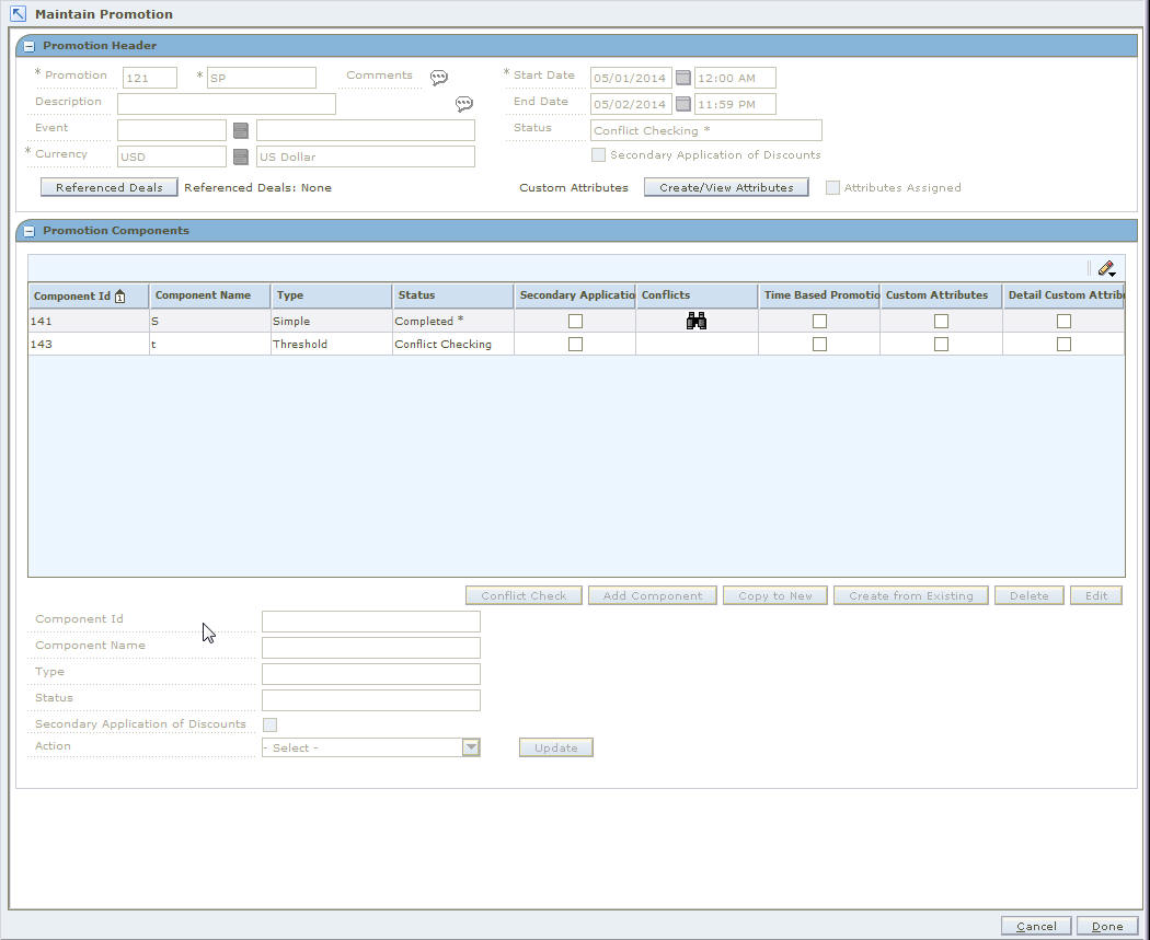Click Done to save the promotion details and go back to the Create Component workspace.
