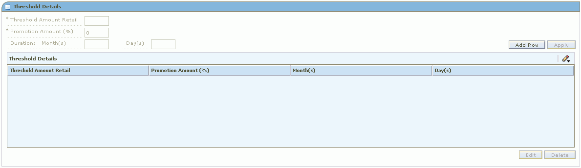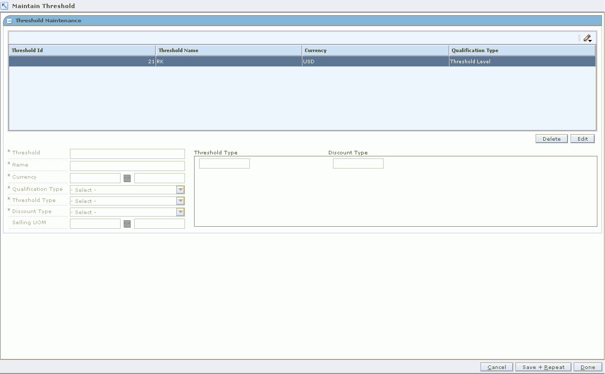 Navigate: From the Task Pad, select Promotion Threshold > Maintain Threshold. The Maintain Threshold workspace opens.
