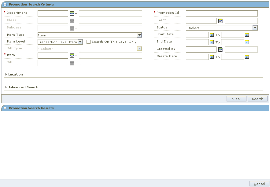 Note: For more details on the type of maintenance that can be done for a promotions see the Oracle Retail Merchandising Implementation Guide chapter on Promotion Maintenance Functionality. |