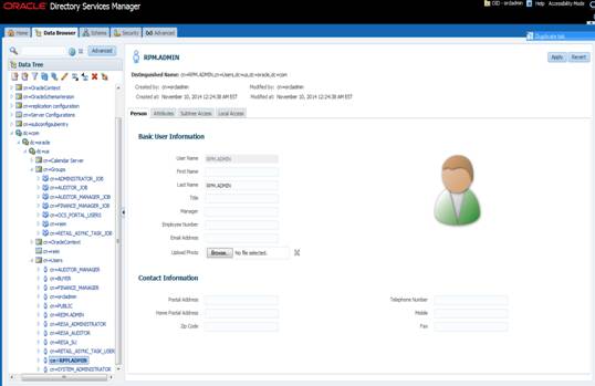 User Management consists of displaying, creating, updating or removing user information. There are many methods of managing an LDAP directory including LDIF scripts or Oracle Directory Services Manager (ODSM) available for OID11g.