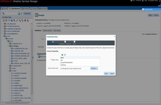 Oracle Directory Services Manager (ODSM) is a Web-based application used in OID11g is designed for both administrators and users which enables you to configure the structure of the directory, define objects in the directory, add and configure users, groups, and other entries. ODSM is the interface you use to manage entries, schema, security, adapters, extensions, and other directory features.