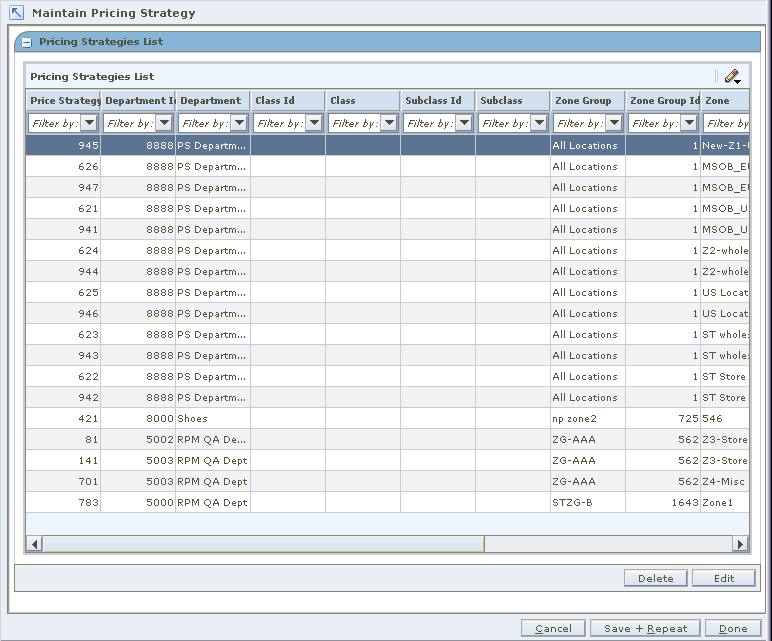 Zone Group - Enter the ID of the zone group that contains the locations to add to the price strategy, or click the LOV and select a zone group.