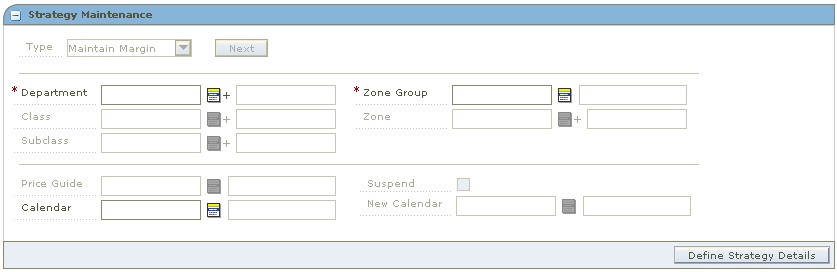 Click Define Strategy Details. The Maintain Margin Strategy Details pane opens.