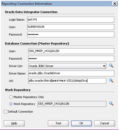 Once Connect to Repository Window appears, click Connect to Repository. The Oracle Data Integrator Login screen appears.