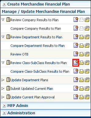 Note: If you want to make adjustments to your plan, you should make them in the Update Department Plans task. The Review Class-SubClass Results to Plan task is for reviewing only. |
