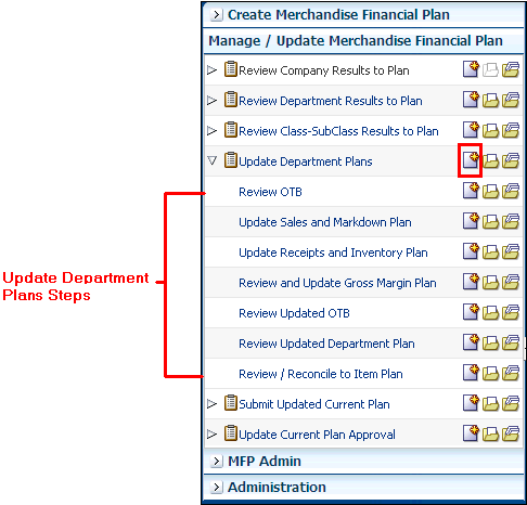 Bottom up users have the ability to update the department plans in-season. If you realize that your plan needs to be adjusted in-season, you can make those adjustments in the Update Department Plans task and resubmit your plan to the middle out user.