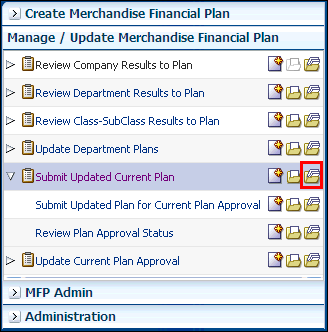 In the taskflow, click the Open icon in the Submit Updated Current Plan task.