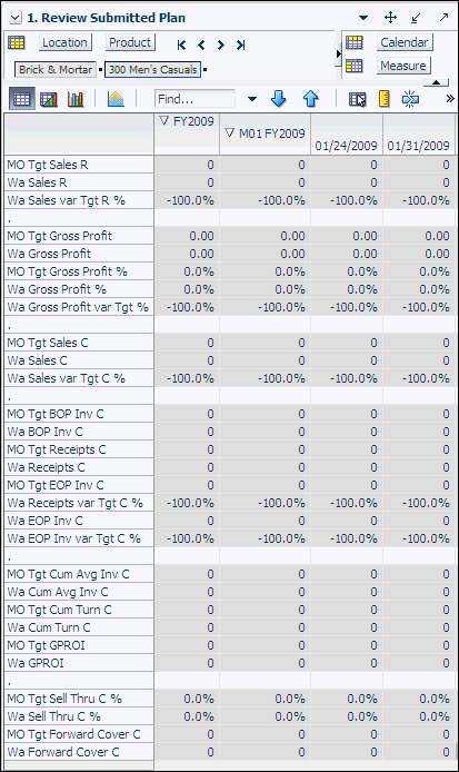 This step includes one view: Review Submitted Plan. This view has four measure profiles that you can use to review the plan: